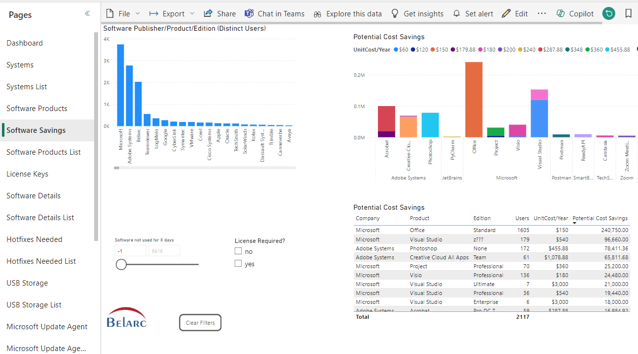Combining the best ITAM discovery with the best business intelligence. BelPower is our interface and reports for Microsoft Power BI. This allows you to use Power BI to view your BelManage data, create new customized reports, and share these Power BI reports with others in your organization.