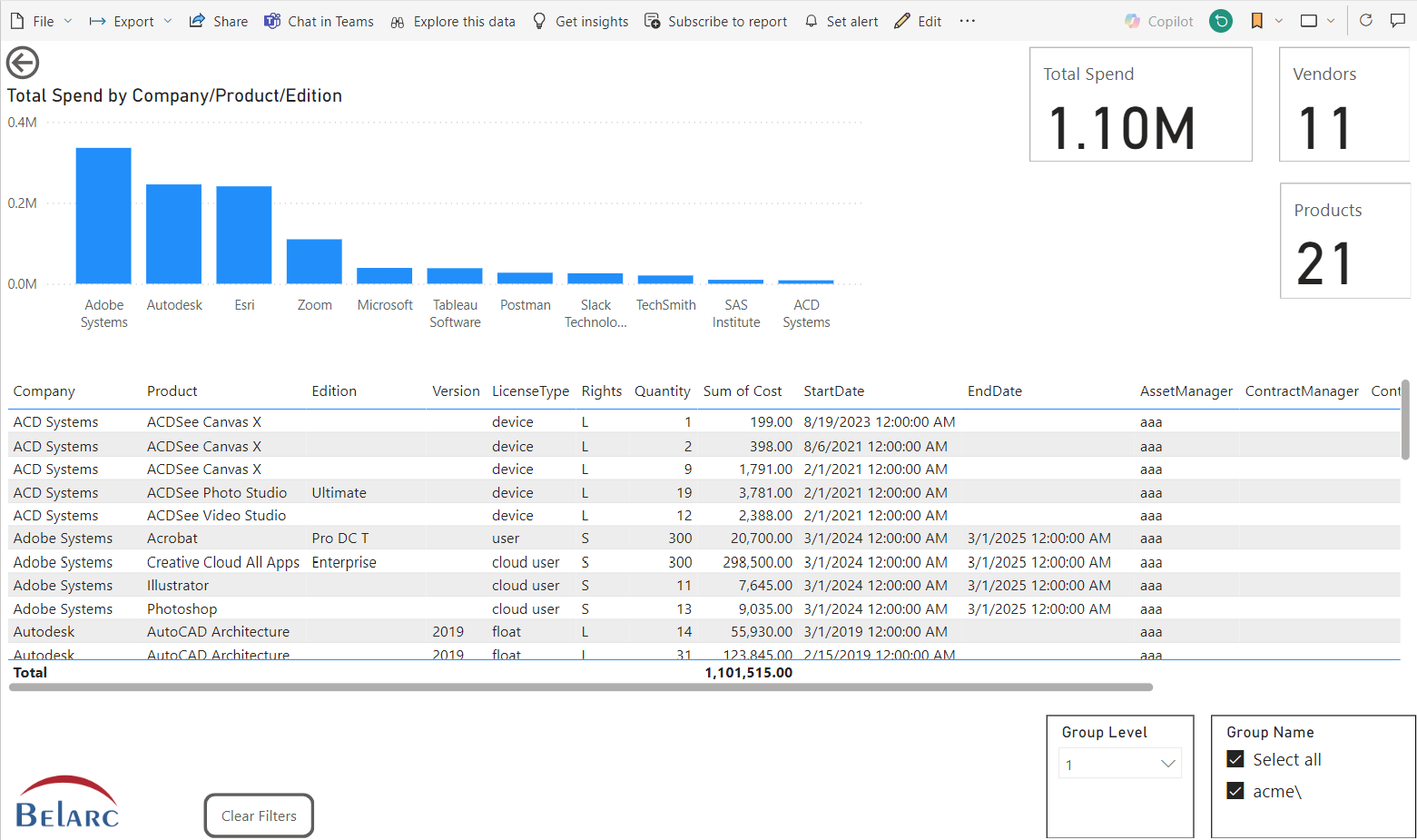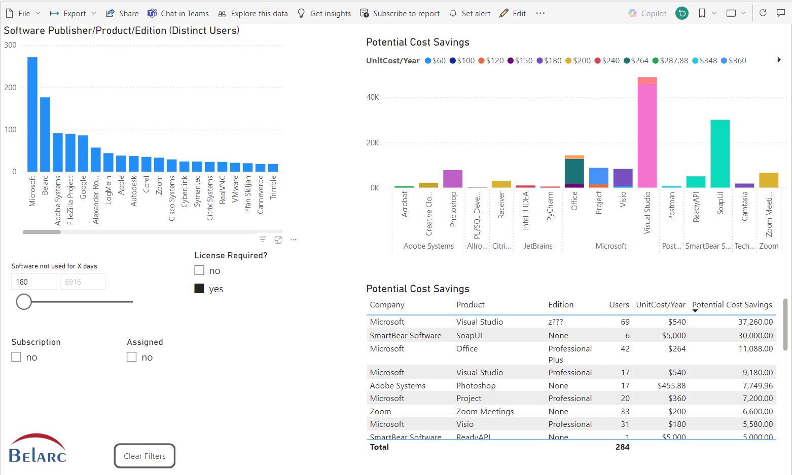 Combining the best ITAM discovery with the best business intelligence. BelPower is our interface and reports for Microsoft Power BI. This allows you to use Power BI to view your BelManage data, create new customized reports, and share these Power BI reports with others in your organization.